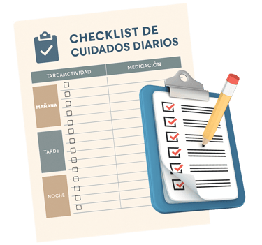Uma folha prática para registrar medicamentos, alimentação, atividades e rotinas essenciais. Facilita o trabalho de cuidadores e familiares, evitando esquecimentos e melhorando a organização. Mais segurança e tranquilidade no cuidado diário.